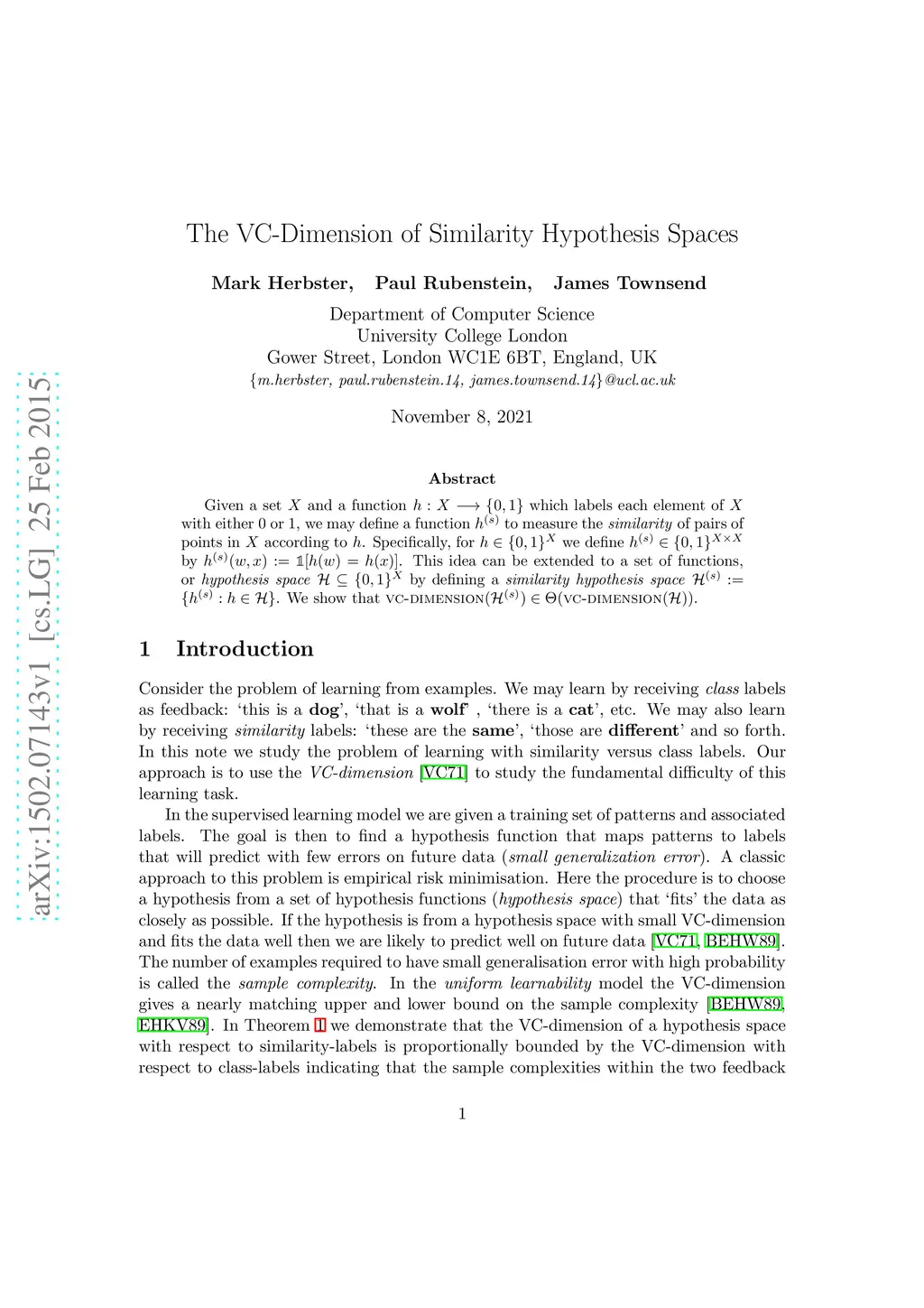 We show that vc−dimension(H(s))∈Θ(vc−dimension(H)).