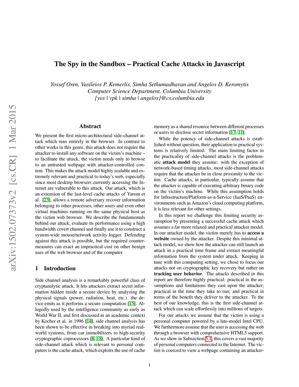 The Spy in the Sandbox -- Practical Cache Attacks in Javascript