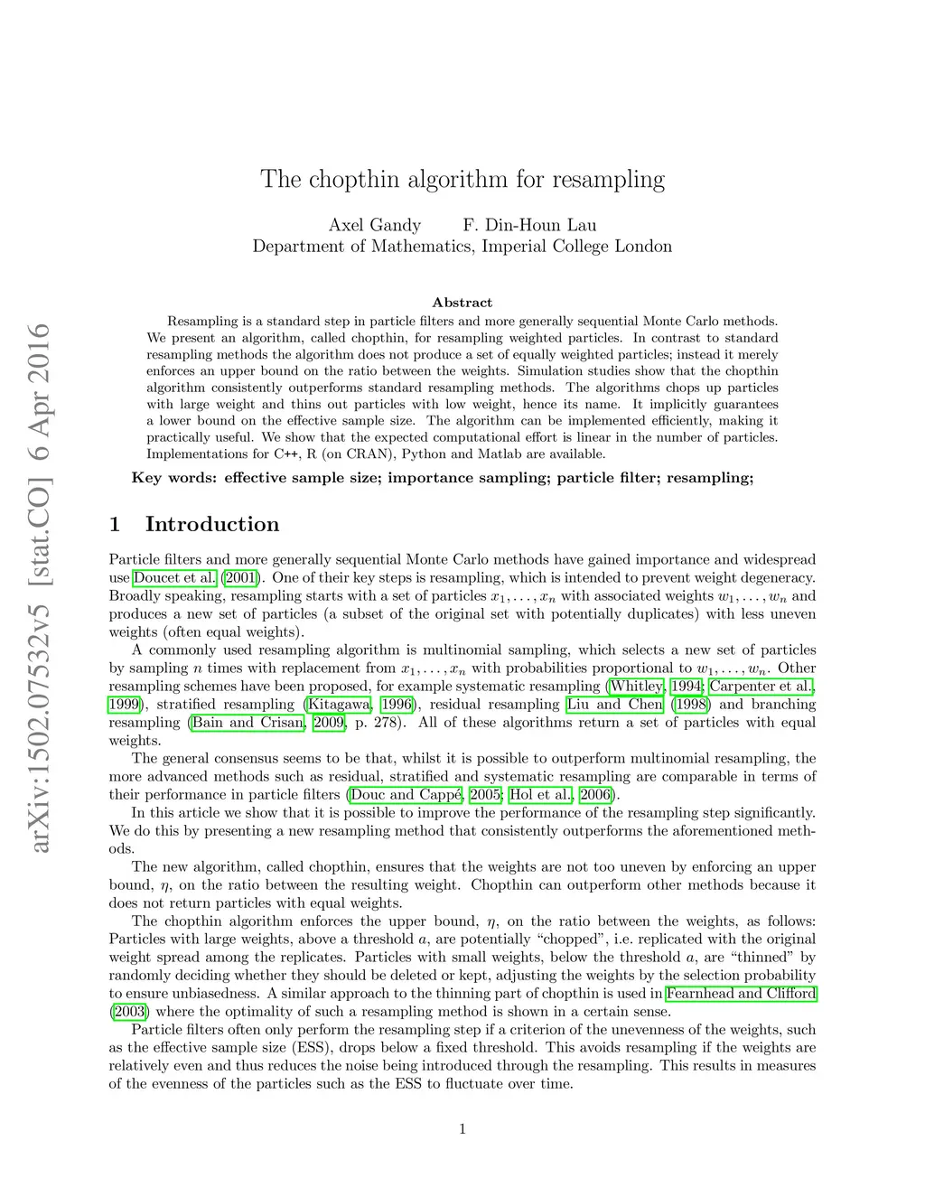The chopthin algorithm for resampling