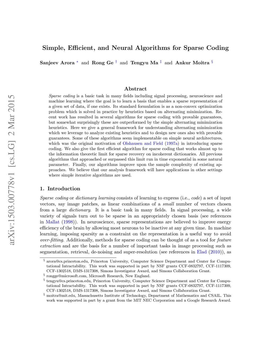 Simple, Efficient, and Neural Algorithms for Sparse Coding