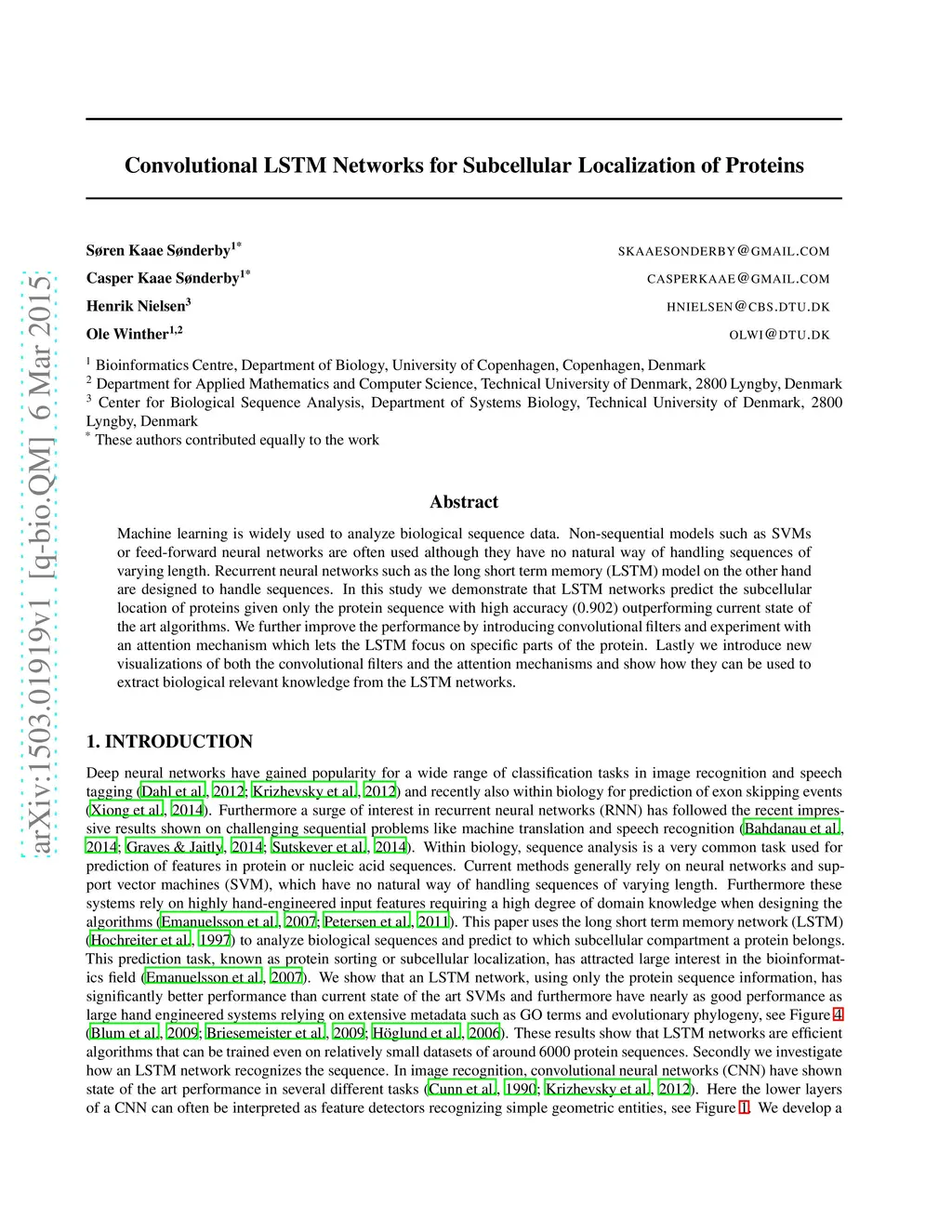 Convolutional LSTM Networks for Subcellular Localization of Proteins