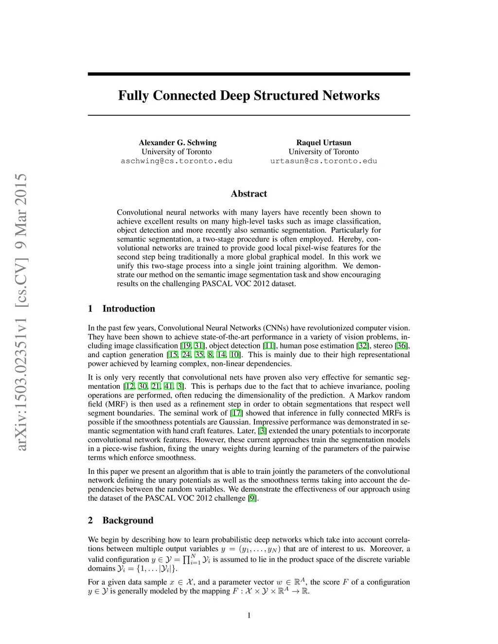 Fully Connected Deep Structured Networks