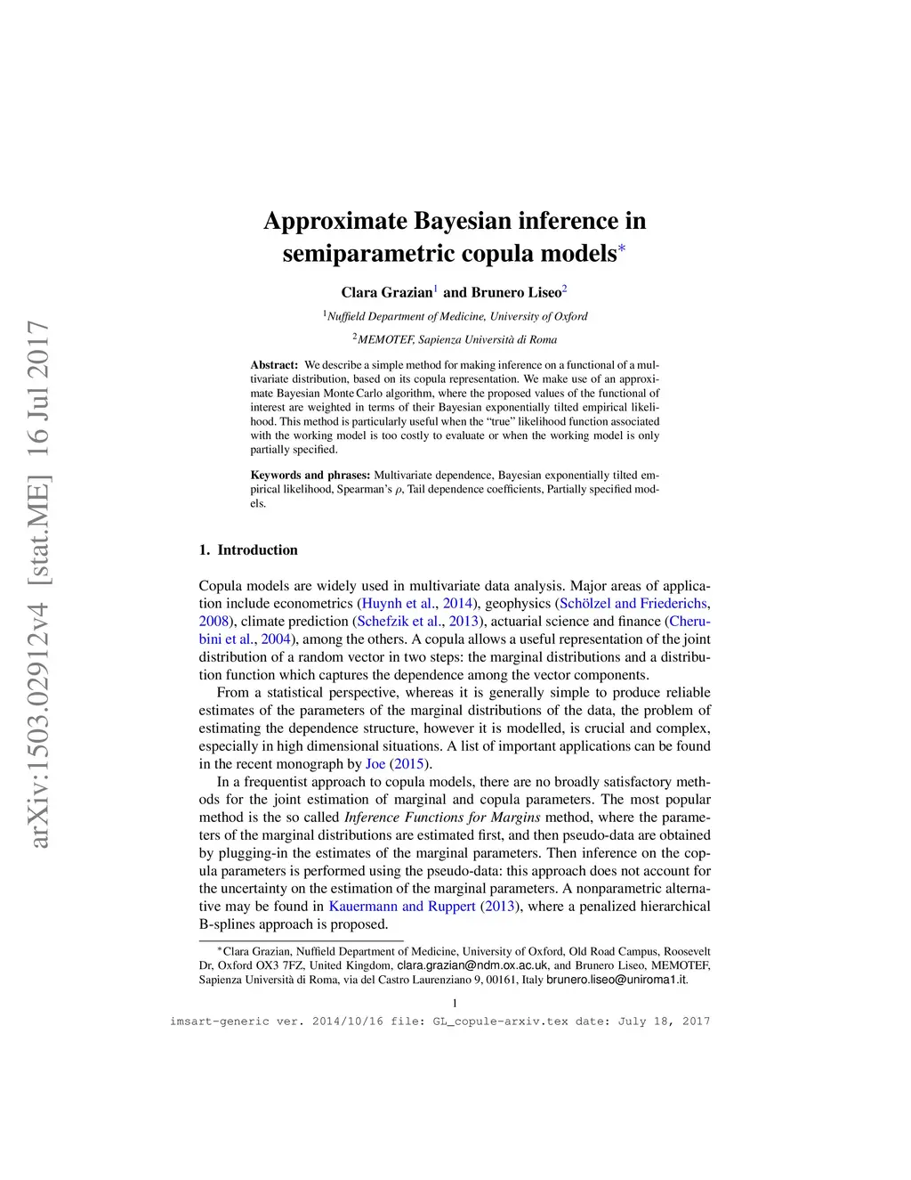 We describe a simple method for making inference on a functional of a multivariate distribution. The method is based on a copula representation of the multivariate distribution and it is based on the properties of an Approximate Bayesian Monte Carlo algorithm, where the proposed values of the functional of interest are weighed in terms of their empirical likelihood. This method is particularly useful when the "true" likelihood function associated with the working model is too costly to evaluate or when the working model is only partially specified.