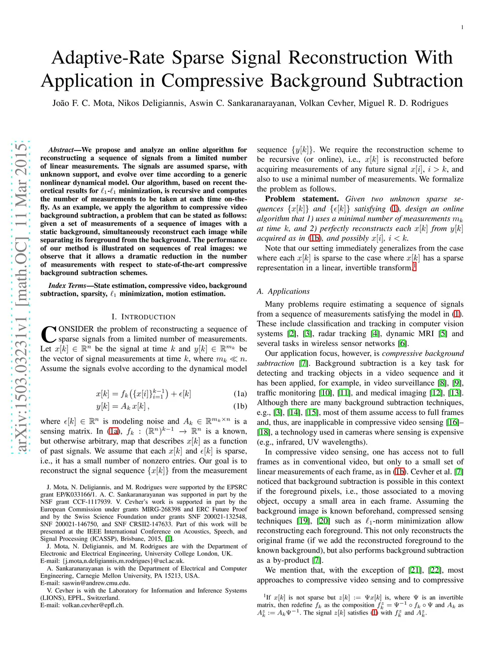 Adaptive-Rate Sparse Signal Reconstruction With Application in