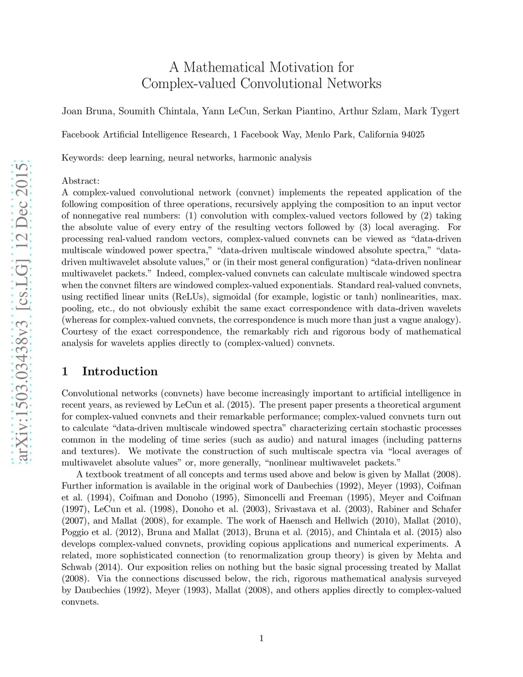 A complex-valued convolutional network (convnet) implements the repeated application of the following composition of three operations, recursively applying the composition to an input vector of nonnegative real numbers: (1) convolution with complex-valued vectors followed by (2) taking the absolute value of every entry of the resulting vectors followed by (3) local averaging. For processing real-valued random vectors, complex-valued convnets can be viewed as "data-driven multiscale windowed power spectra," "data-driven multiscale windowed absolute spectra," "data-driven multiwavelet absolute values," or (in their most general configuration) "data-driven nonlinear multiwavelet packets." Indeed, complex-valued convnets can calculate multiscale windowed spectra when the convnet filters are windowed complex-valued exponentials. Standard real-valued convnets, using rectified linear units (ReLUs), sigmoidal (for example, logistic or tanh) nonlinearities, max. pooling, etc., do not obviously exhibit the same exact correspondence with data-driven wavelets (whereas for complex-valued convnets, the correspondence is much more than just a vague analogy). Courtesy of the exact correspondence, the remarkably rich and rigorous body of mathematical analysis for wavelets applies directly to (complex-valued) convnets.