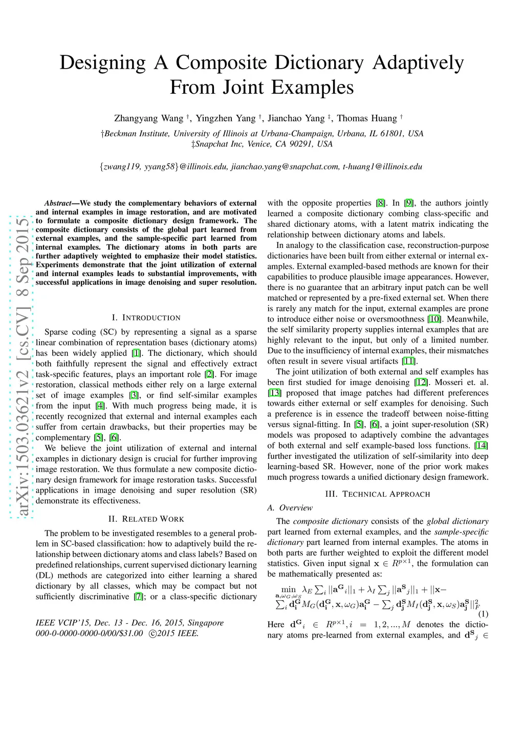 Designing A Composite Dictionary Adaptively From Joint Examples