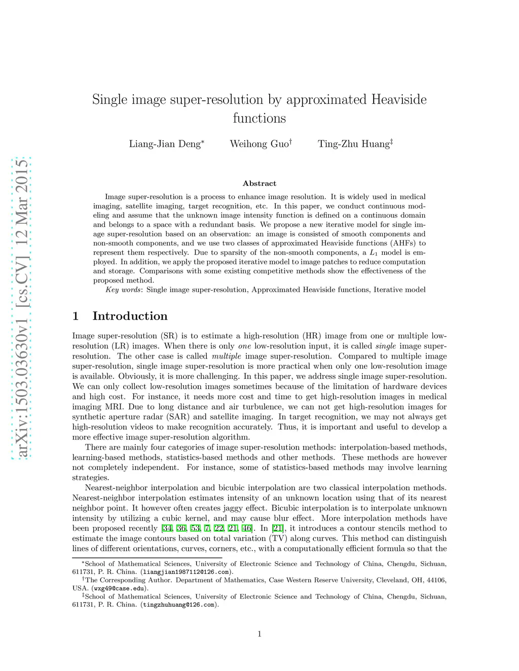 Image super-resolution is a process to enhance image resolution. It is widely used in medical imaging, satellite imaging, target recognition, etc. In this paper, we conduct continuous modeling and assume that the unknown image intensity function is defined on a continuous domain and belongs to a space with a redundant basis. We propose a new iterative model for single image super-resolution based on an observation: an image is consisted of smooth components and non-smooth components, and we use two classes of approximated Heaviside functions (AHFs) to represent them respectively. Due to sparsity of the non-smooth components, a model is employed. In addition, we apply the proposed iterative model to image patches to reduce computation and storage. Comparisons with some existing competitive methods show the effectiveness of the proposed method.