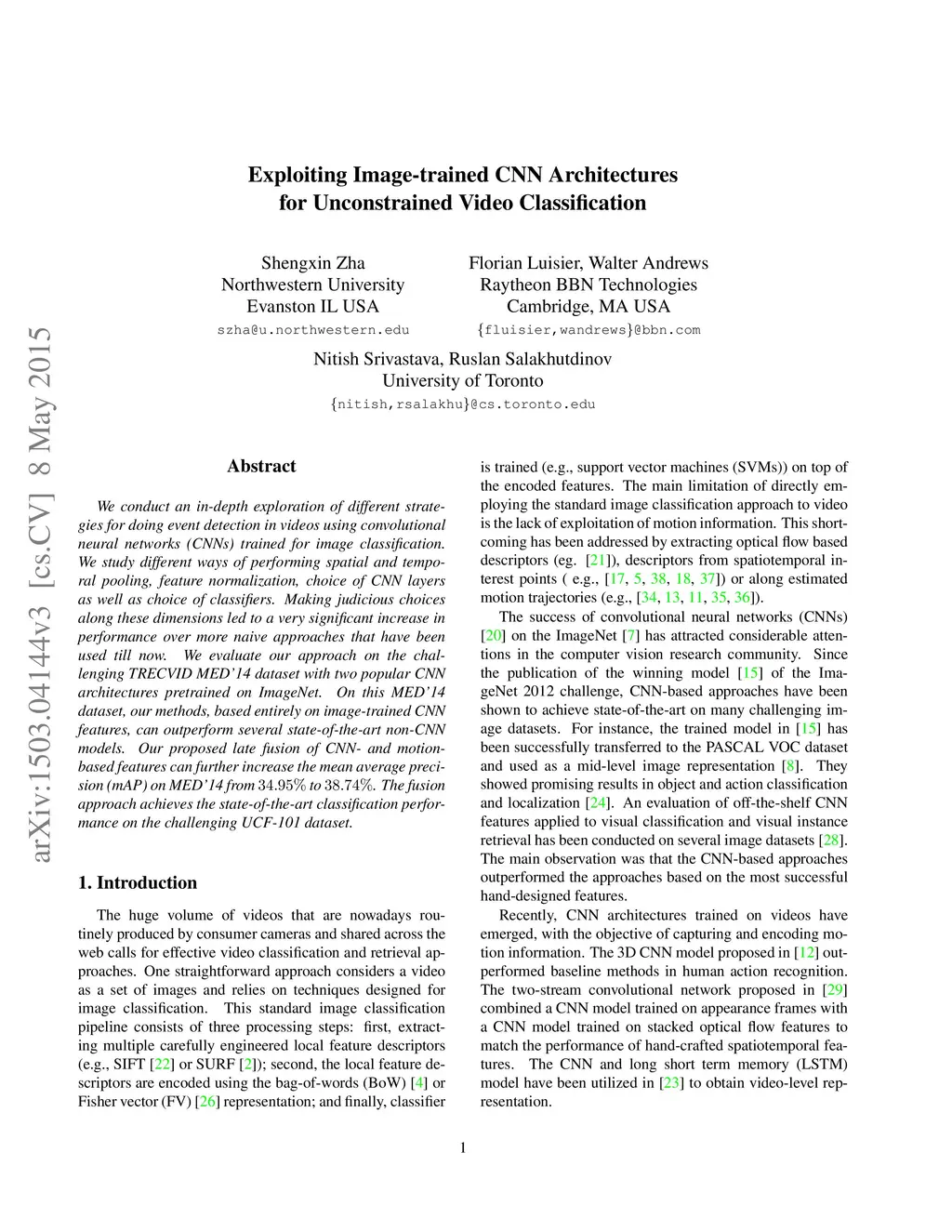 Exploiting Image-trained CNN Architectures for Unconstrained Video