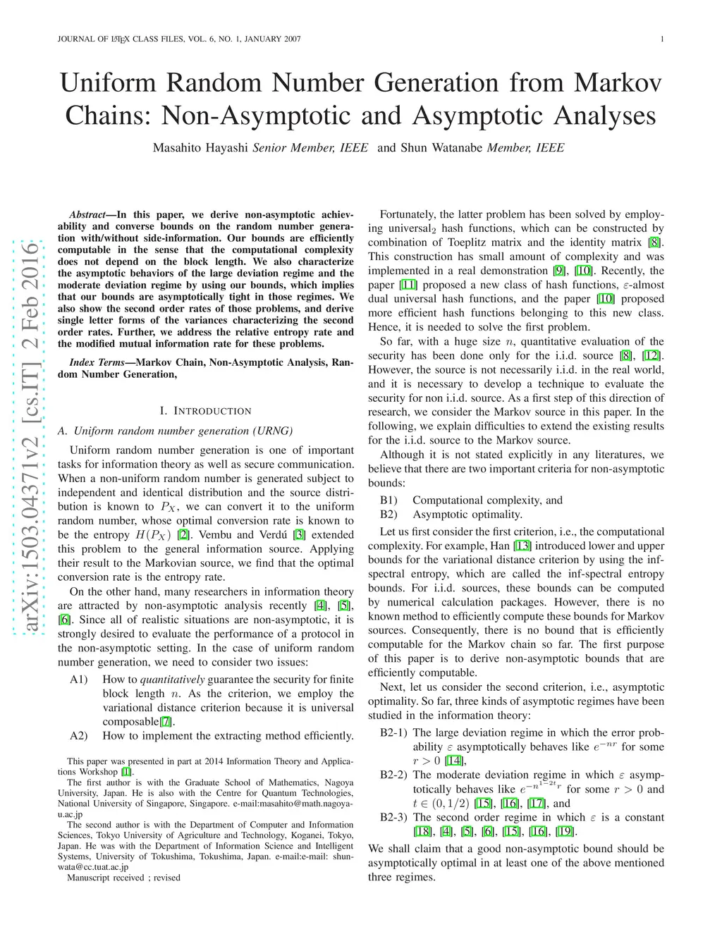 Uniform Random Number Generation from Markov Chains: Non-Asymptotic and