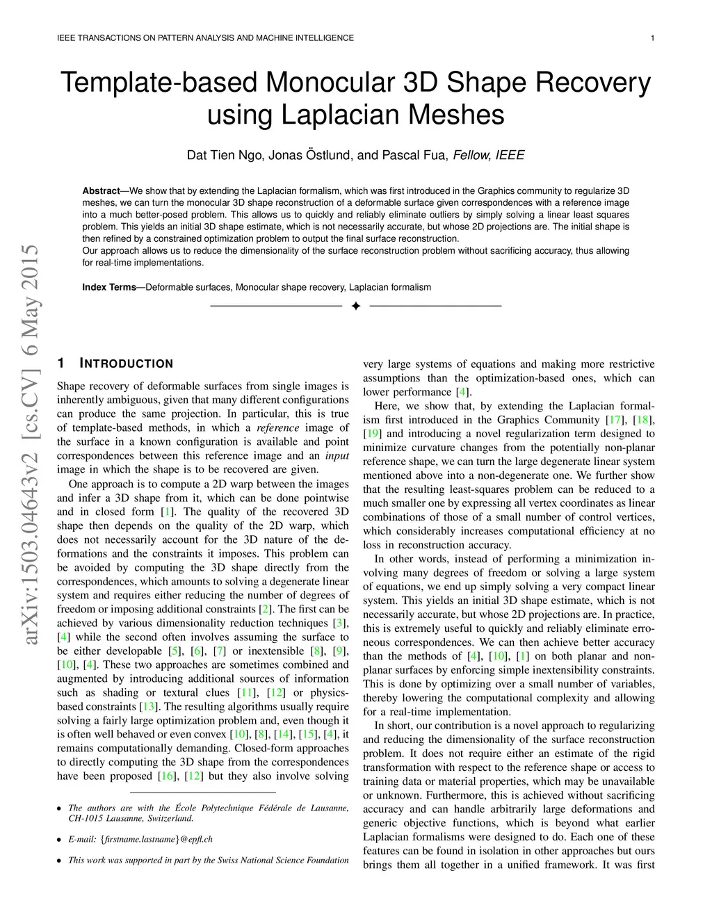 Template-based Monocular 3D Shape Recovery using Laplacian Meshes