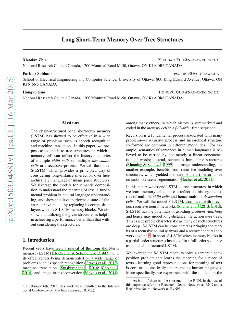 Long Short-Term Memory Over Tree Structures