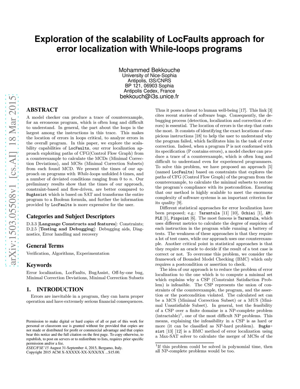 Exploration of the scalability of LocFaults approach for error