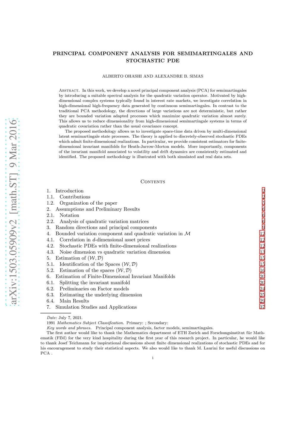 In this work, we develop a novel principal component analysis (PCA) for semimartingales by introducing a suitable spectral analysis for the quadratic variation operator. Motivated by high-dimensional complex systems typically found in interest rate markets, we investigate correlation in high-dimensional high-frequency data generated by continuous semimartingales. In contrast to the traditional PCA methodology, the directions of large variations are not deterministic, but rather they are bounded variation adapted processes which maximize quadratic variation almost surely. This allows us to reduce dimensionality from high-dimensional semimartingale systems in terms of covariation rather than the usual covariance concept. The proposed methodology allows us to investigate space-time data driven by multi-dimensional latent semimartingale state processes. The theory is applied to discretely-observed stochastic PDEs which admit finite-dimensional realizations. In particular, we provide consistent estimators for finite-dimensional invariant manifolds for Heath-Jarrow-Morton models. More importantly, components of the invariant manifold induced by volatility and drift dynamics are consistently estimated and identified.