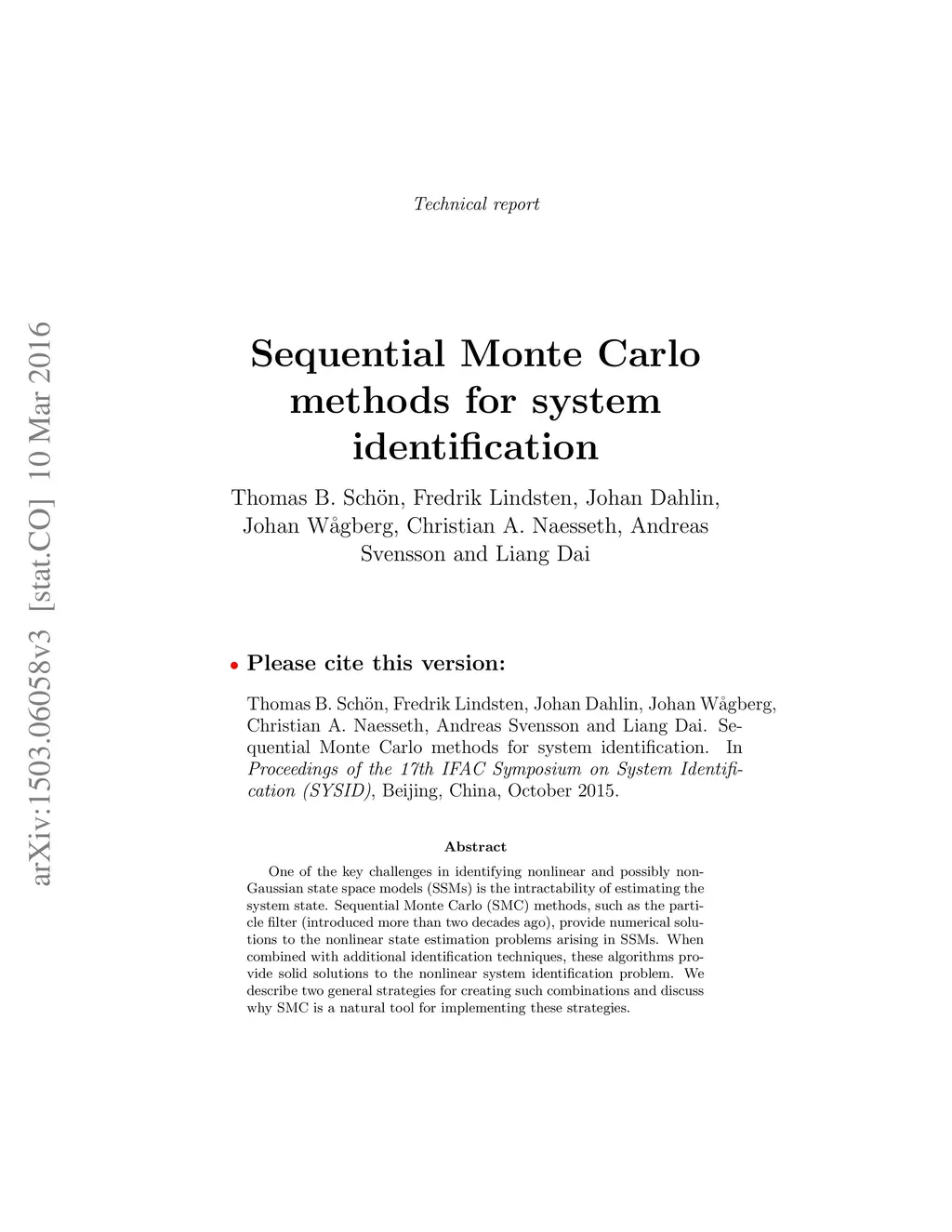 Sequential Monte Carlo Methods for System Identification