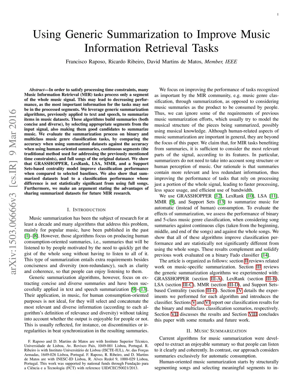Using Generic Summarization to Improve Music Information Retrieval Tasks