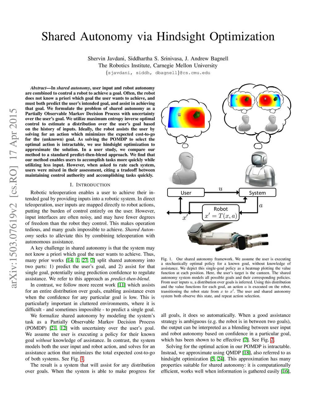 Shared Autonomy via Hindsight Optimization
