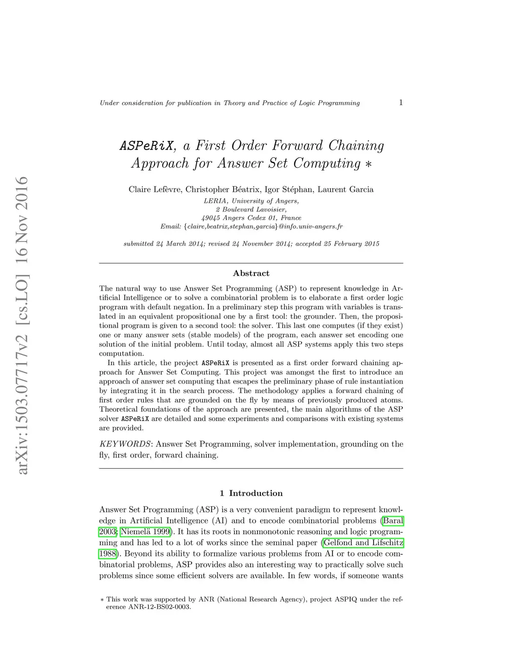 ASPeRiX, a First Order Forward Chaining Approach for Answer Set