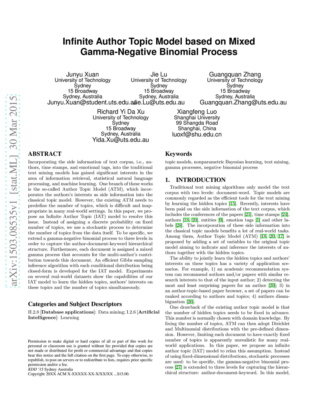Infinite Author Topic Model based on Mixed Gamma-Negative Binomial