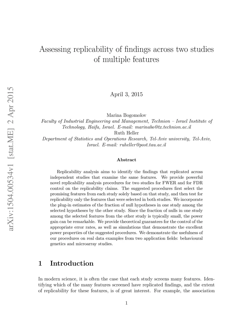 Replicability analysis aims to identify the findings that replicated across independent studies that examine the same features. We provide powerful novel replicability analysis procedures for two studies for FWER and for FDR control on the replicability claims. The suggested procedures first select the promising features from each study solely based on that study, and then test for replicability only the features that were selected in both studies. We incorporate the plug-in estimates of the fraction of null hypotheses in one study among the selected hypotheses by the other study. Since the fraction of nulls in one study among the selected features from the other study is typically small, the power gain can be remarkable. We provide theoretical guarantees for the control of the appropriate error rates, as well as simulations that demonstrate the excellent power properties of the suggested procedures. We demonstrate the usefulness of our procedures on real data examples from two application fields: behavioural genetics and microarray studies.