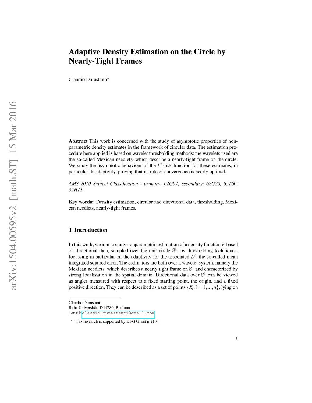 This work is concerned with the study of asymptotic properties of nonparametric density estimates in the framework of circular data. The estimation procedure here applied is based on wavelet thresholding methods: the wavelets used are the so-called Mexican needlets, which describe a nearly-tight frame on the circle. We study the asymptotic behaviour of the -risk function for these estimates, in particular its adaptivity, proving that its rate of convergence is nearly optimal.