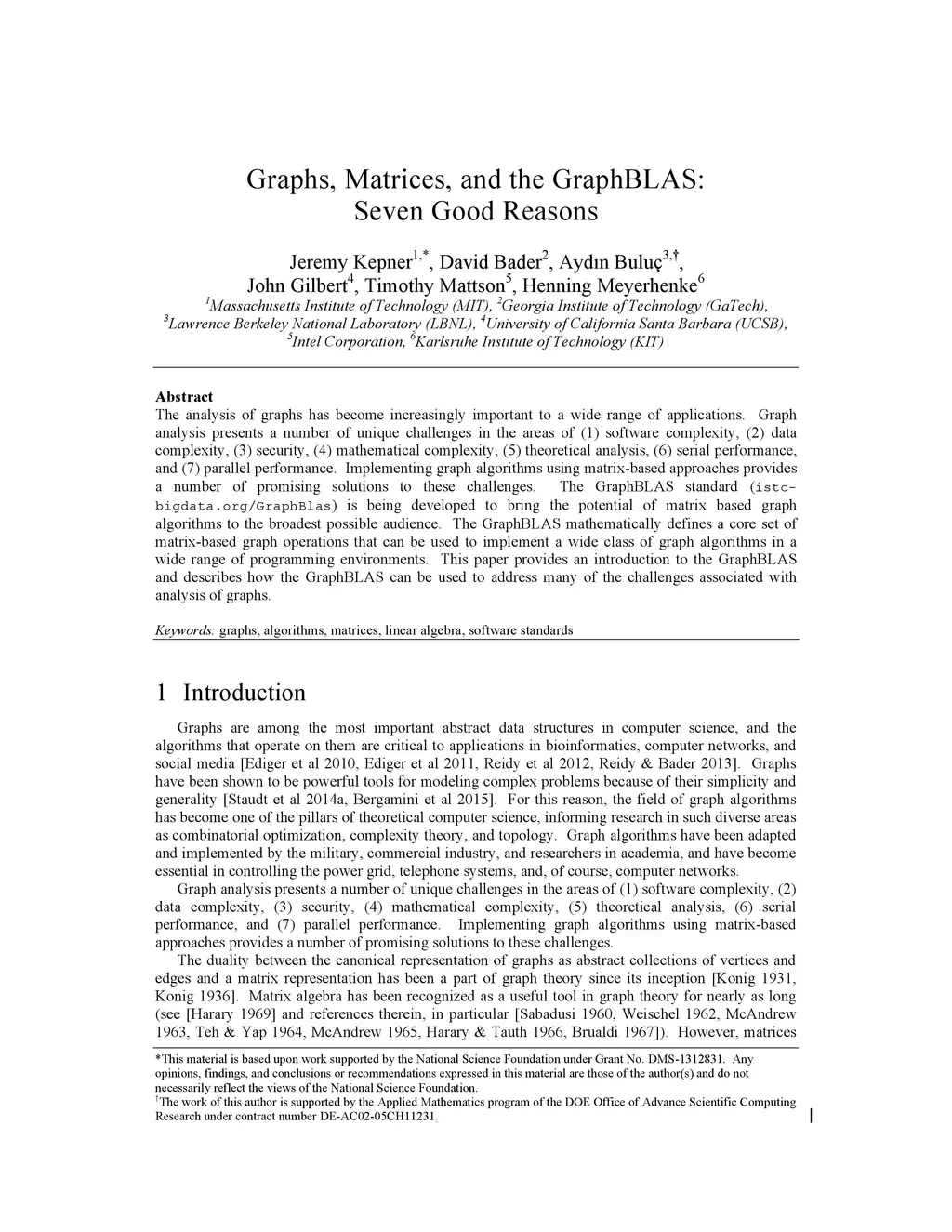 Graphs, Matrices, and the GraphBLAS: Seven Good Reasons