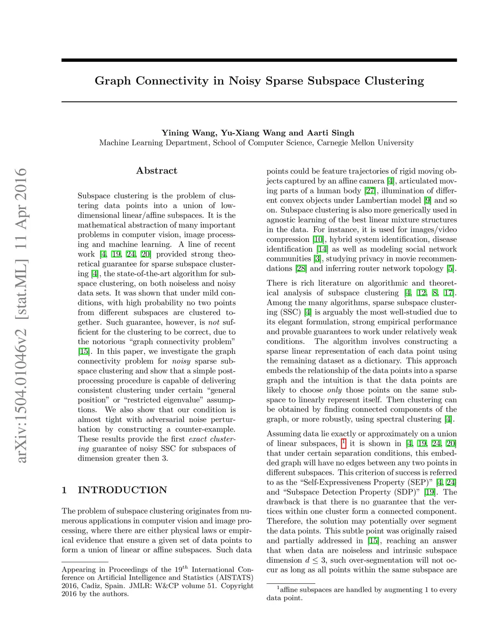 Subspace clustering is the problem of clustering data points into a union of low-dimensional linear/affine subspaces. It is the mathematical abstraction of many important problems in computer vision, image processing and machine learning. A line of recent work (4, 19, 24, 20) provided strong theoretical guarantee for sparse subspace clustering (4), the state-of-the-art algorithm for subspace clustering, on both noiseless and noisy data sets. It was shown that under mild conditions, with high probability no two points from different subspaces are clustered together. Such guarantee, however, is not sufficient for the clustering to be correct, due to the notorious "graph connectivity problem" (15). In this paper, we investigate the graph connectivity problem for noisy sparse subspace clustering and show that a simple post-processing procedure is capable of delivering consistent clustering under certain "general position" or "restricted eigenvalue" assumptions. We also show that our condition is almost tight with adversarial noise perturbation by constructing a counter-example. These results provide the first exact clustering guarantee of noisy SSC for subspaces of dimension greater then 3.
