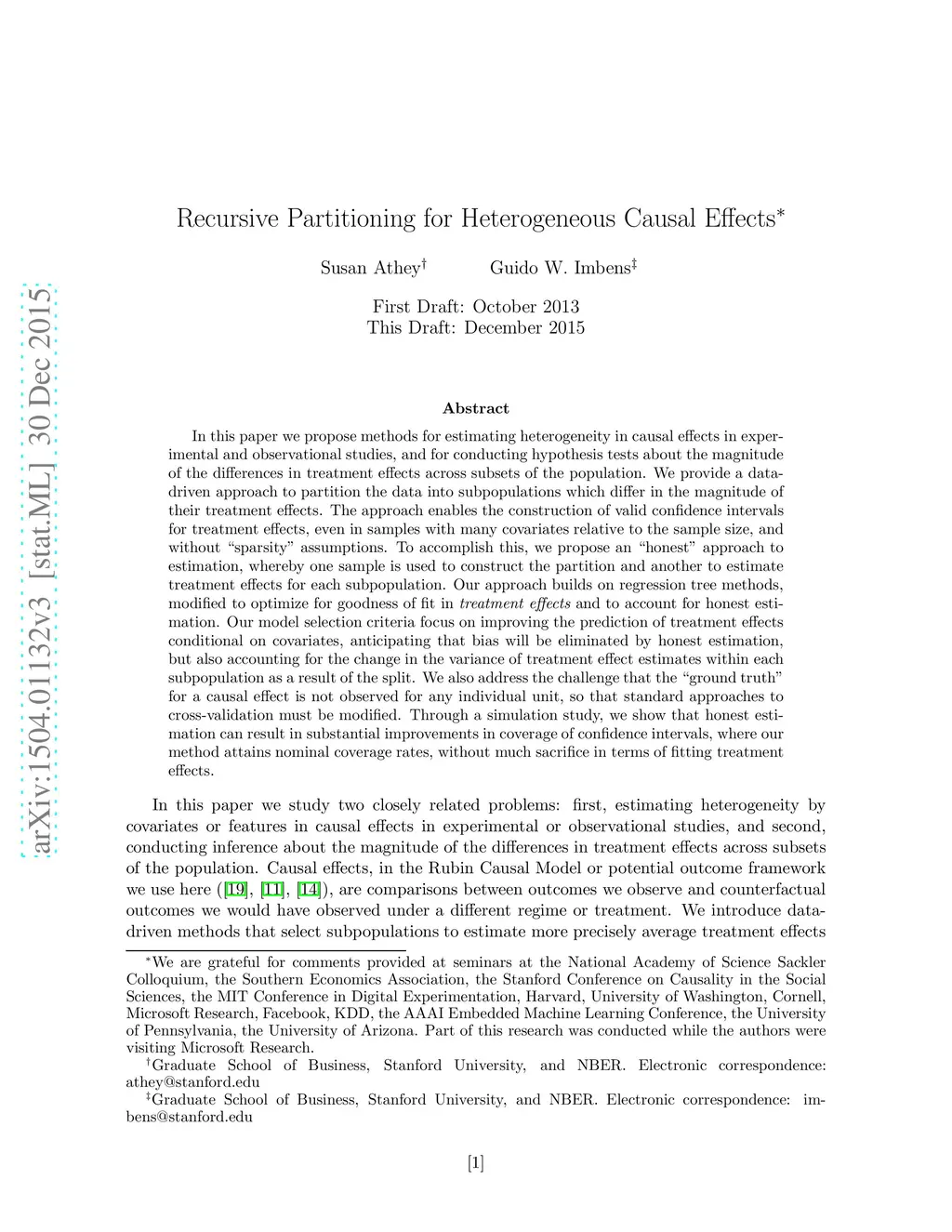 Recursive Partitioning for Heterogeneous Causal Effects