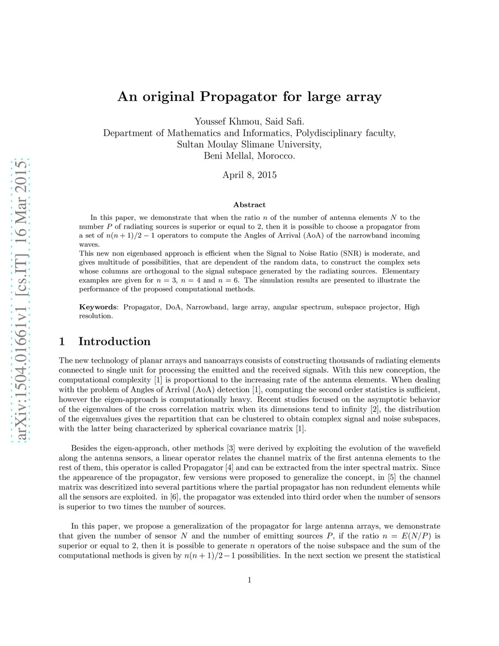 In this paper, we demonstrate that when the ratio of the number of antenna elements to the number of radiating sources is superior or equal to , then it is possible to choose a propagator from a set of operators to compute the Angles of Arrival (AoA) of the narrowband incoming waves. This new non eigenbased approach is efficient when the Signal to Noise Ratio (SNR) is moderate, and gives multitude of possibilities, that are dependent of the random data, to construct the complex sets whose columns are orthogonal to the signal subspace generated by the radiating sources. Elementary examples are given for , and . The simulation results are presented to illustrate the performance of the proposed computational methods.