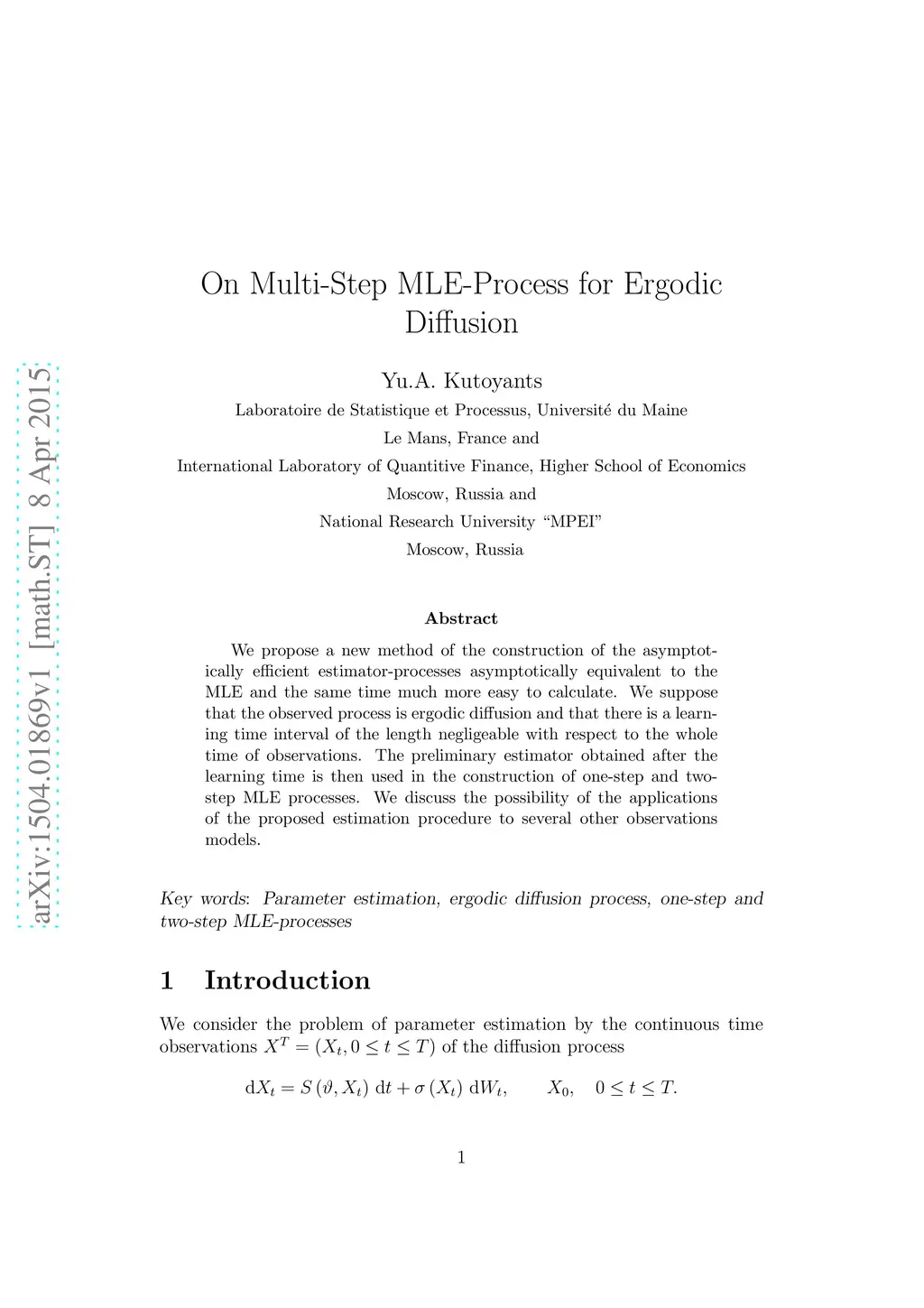 We propose a new method of the construction of the asymptotically efficient estimator-processes asymptotically equivalent to the MLE and the same time much more easy to calculate. We suppose that the observed process is ergodic diffusion and that there is a learning time interval of the length negligeable with respect to the whole time of observations. The preliminary estimator obtained after the learning time is then used in the construction of one-step and two-step MLE processes. We discuss the possibility of the applications of the proposed estimation procedure to several other observations models.