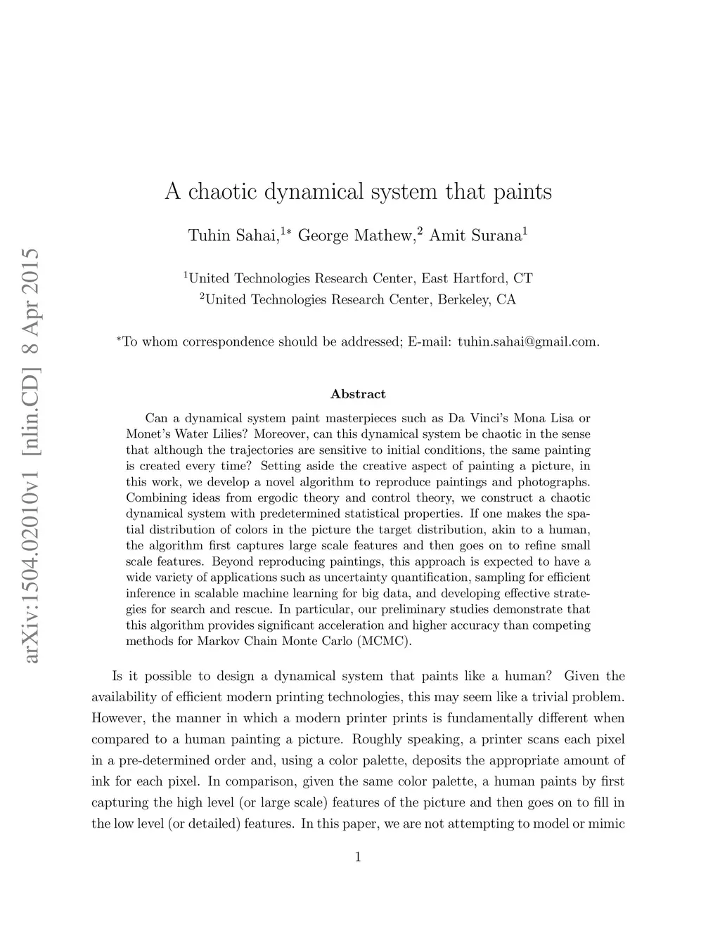 Can a dynamical system paint masterpieces such as Da Vinci's Mona Lisa or Monet's Water Lilies? Moreover, can this dynamical system be chaotic in the sense that although the trajectories are sensitive to initial conditions, the same painting is created every time? Setting aside the creative aspect of painting a picture, in this work, we develop a novel algorithm to reproduce paintings and photographs. Combining ideas from ergodic theory and control theory, we construct a chaotic dynamical system with predetermined statistical properties. If one makes the spatial distribution of colors in the picture the target distribution, akin to a human, the algorithm first captures large scale features and then goes on to refine small scale features. Beyond reproducing paintings, this approach is expected to have a wide variety of applications such as uncertainty quantification, sampling for efficient inference in scalable machine learning for big data, and developing effective strategies for search and rescue. In particular, our preliminary studies demonstrate that this algorithm provides significant acceleration and higher accuracy than competing methods for Markov Chain Monte Carlo (MCMC).