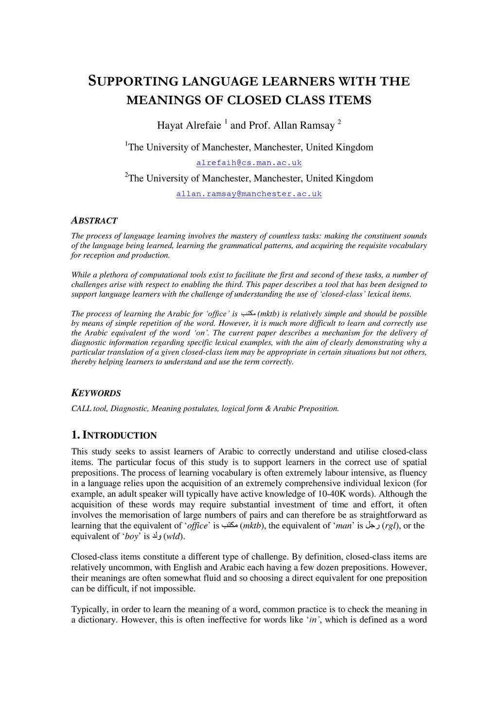 The process of language learning involves the mastery of countless tasks: making the constituent sounds of the language being learned, learning the grammatical patterns, and acquiring the requisite vocabulary for reception and production. While a plethora of computational tools exist to facilitate the first and second of these tasks, a number of challenges arise with respect to enabling the third. This paper describes a tool that has been designed to support language learners with the challenge of understanding the use of closed-class lexical items. The process of learning the Arabic for office is (mktb) is relatively simple and should be possible by means of simple repetition of the word. However, it is much more difficult to learn and correctly use the Arabic equivalent of the word on. The current paper describes a mechanism for the delivery of diagnostic information regarding specific lexical examples, with the aim of clearly demonstrating why a particular translation of a given closed-class item may be appropriate in certain situations but not others, thereby helping learners to understand and use the term correctly.
