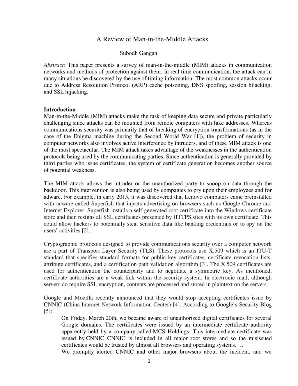 A Review of Man-in-the-Middle Attacks