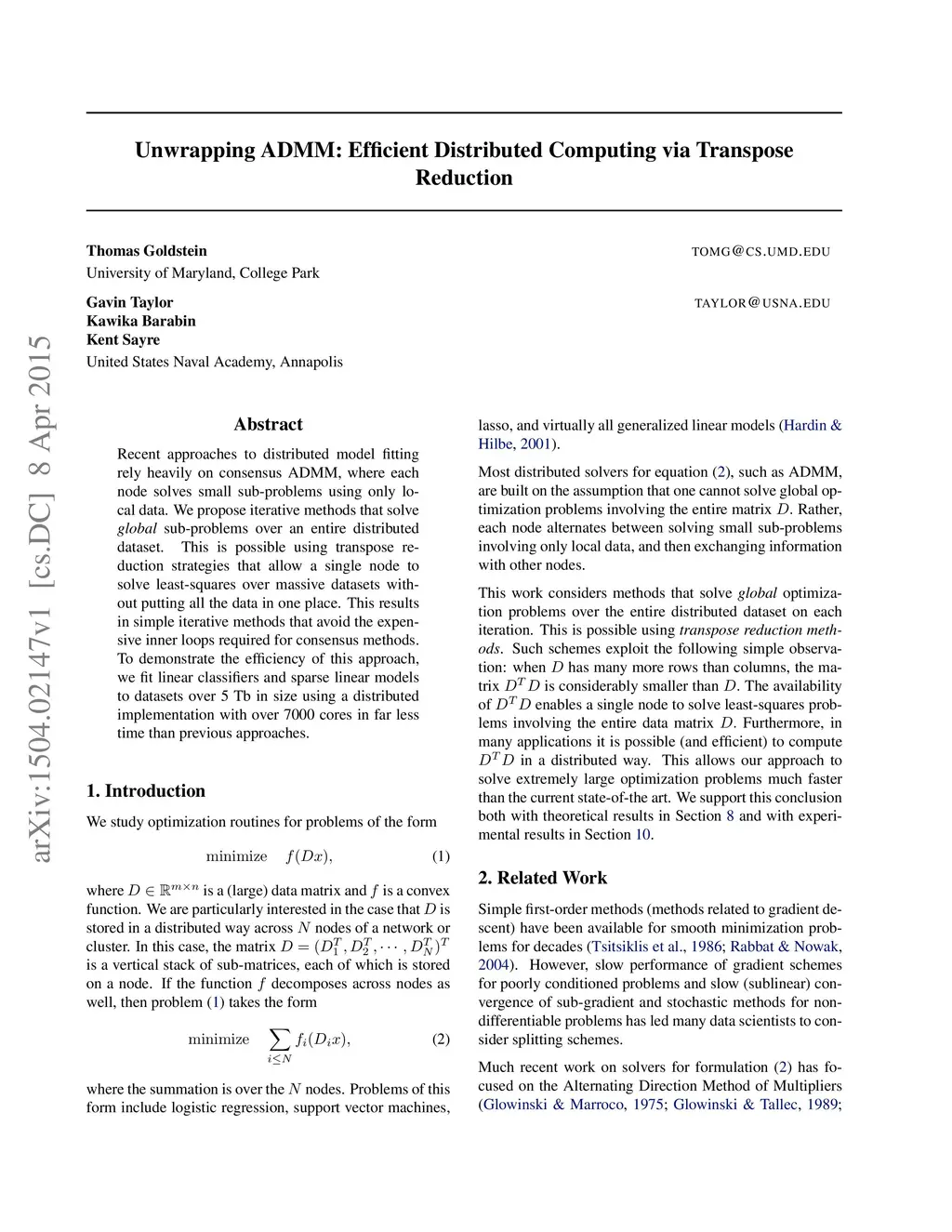 Unwrapping ADMM: Efficient Distributed Computing via Transpose Reduction