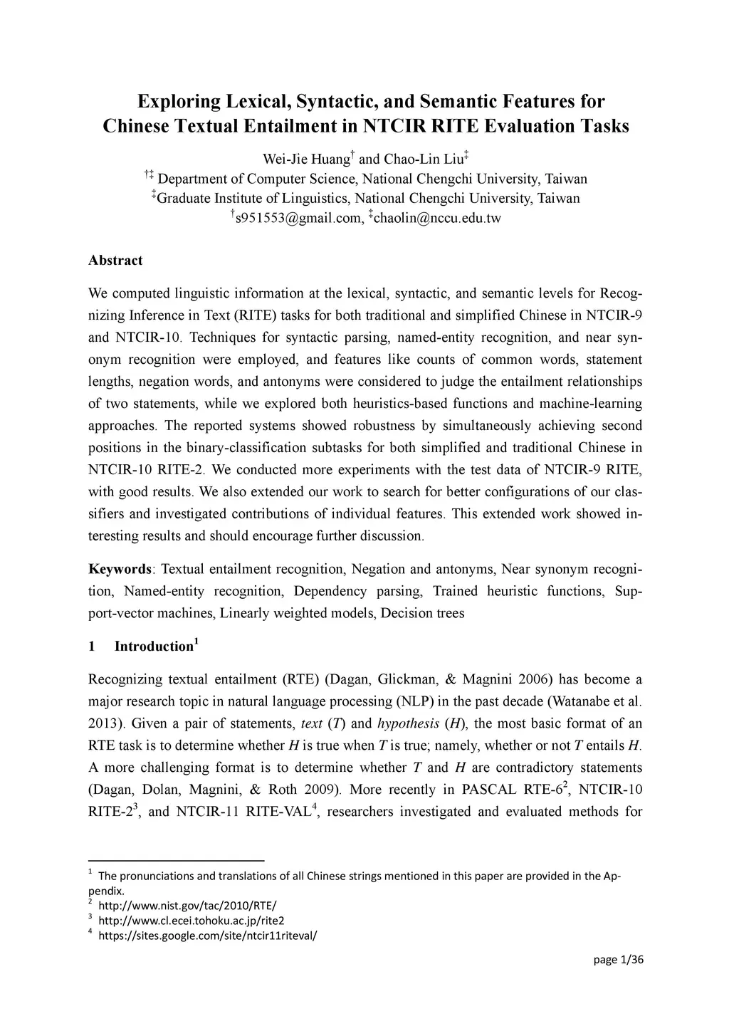 Exploring Lexical, Syntactic, and Semantic Features for Chinese Textual