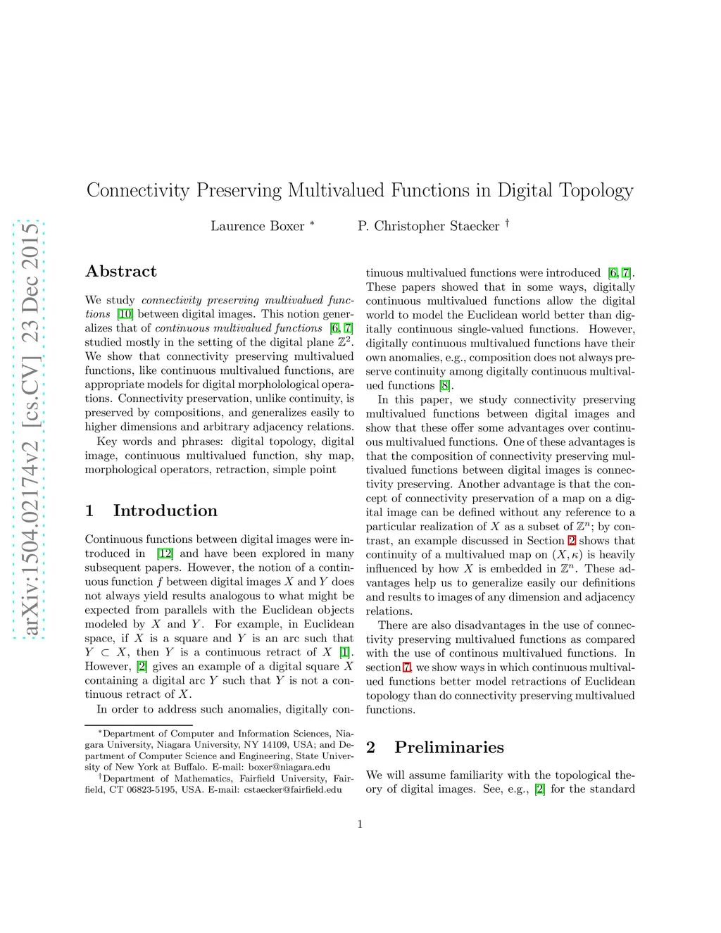 We study connectivity preserving multivalued functions between digital images. This notion generalizes that of continuous multivalued functions studied mostly in the setting of the digital plane . We show that connectivity preserving multivalued functions, like continuous multivalued functions, are appropriate models for digital morpholological operations. Connectivity preservation, unlike continuity, is preserved by compositions, and generalizes easily to higher dimensions and arbitrary adjacency relations.