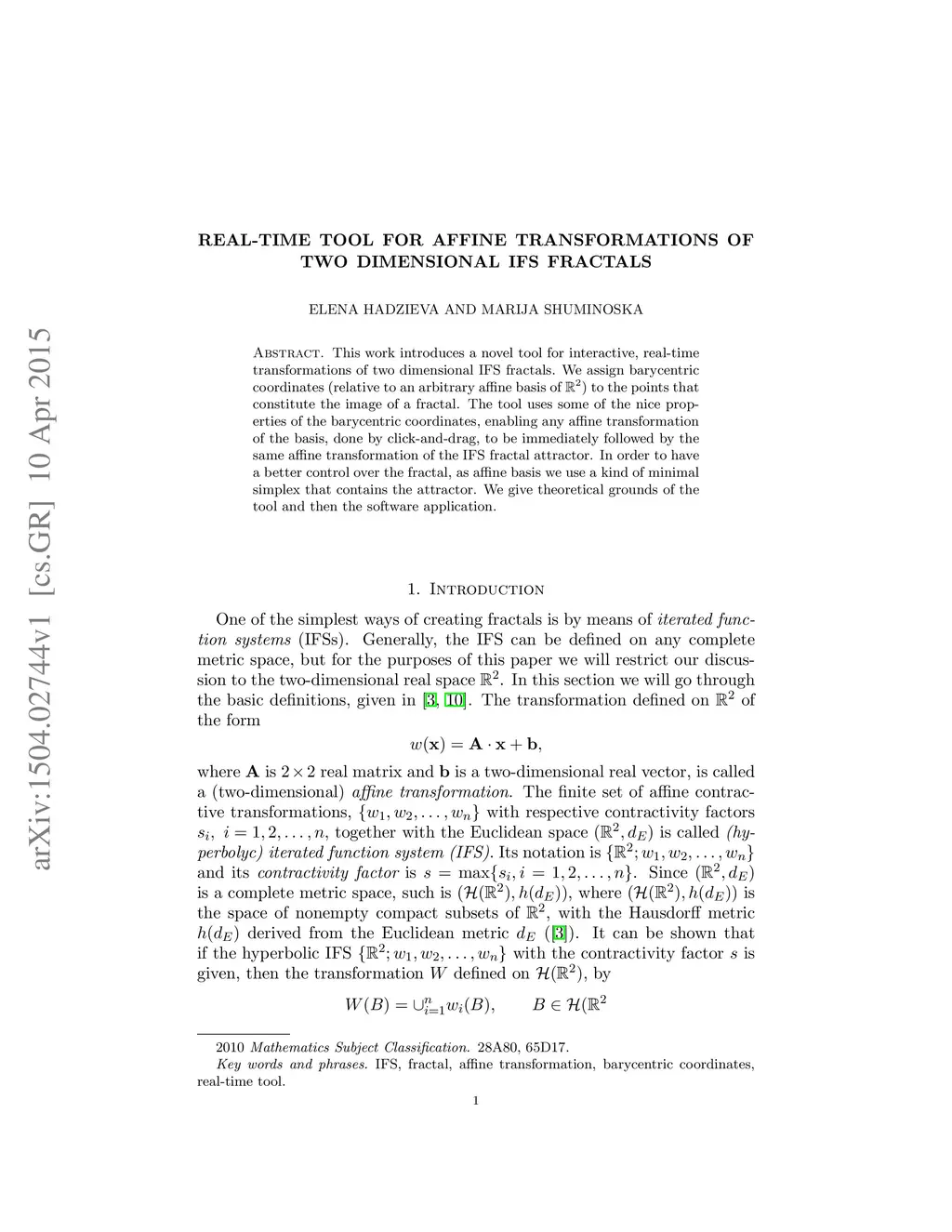 Real-time Tool for Affine Transformations of Two Dimensional IFS