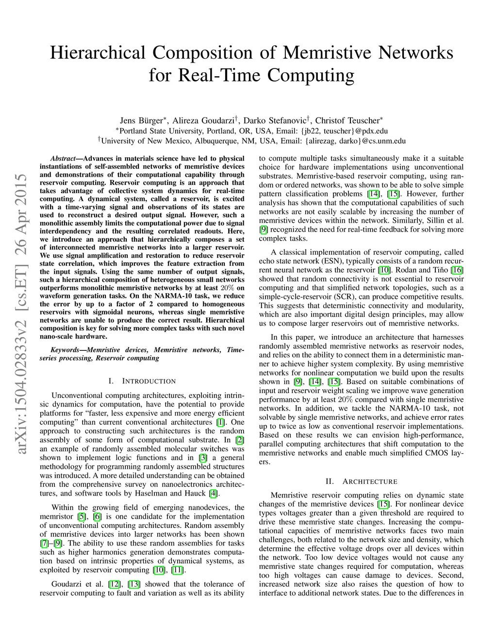 Hierarchical Composition of Memristive Networks for Real-Time Computing