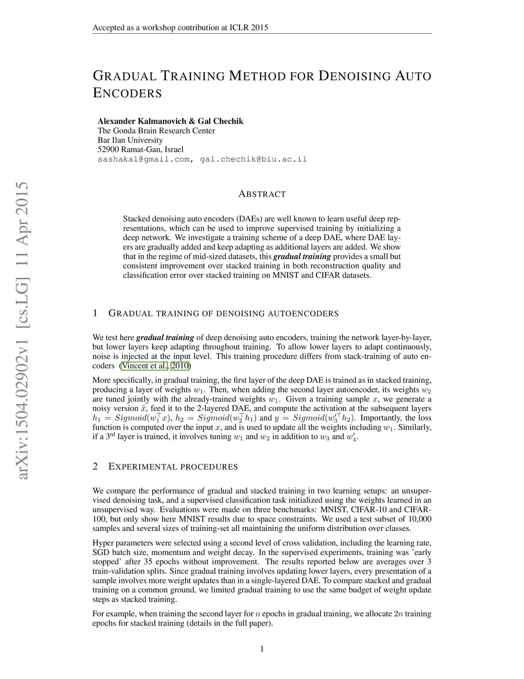 Gradual Training Method for Denoising Auto Encoders