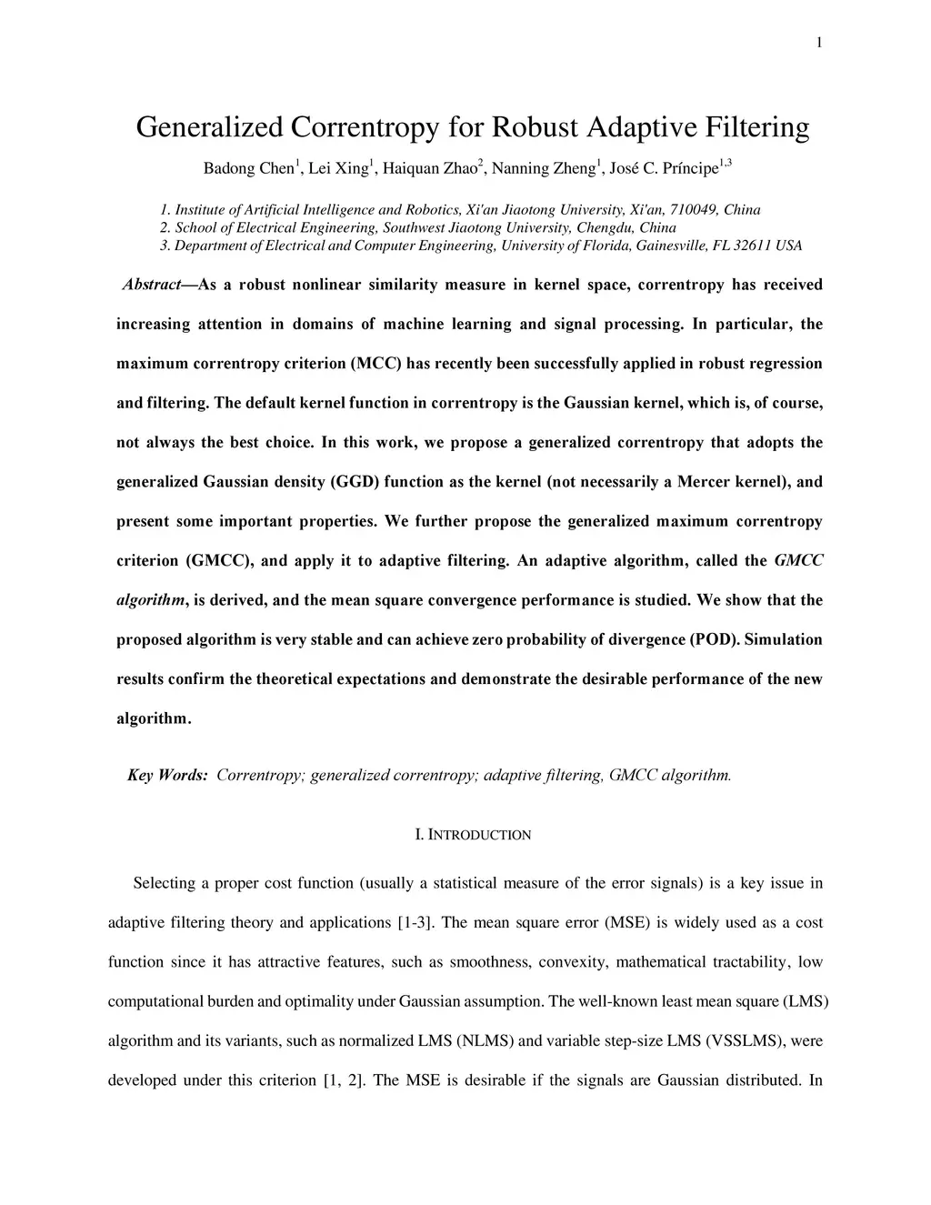Generalized Correntropy for Robust Adaptive Filtering