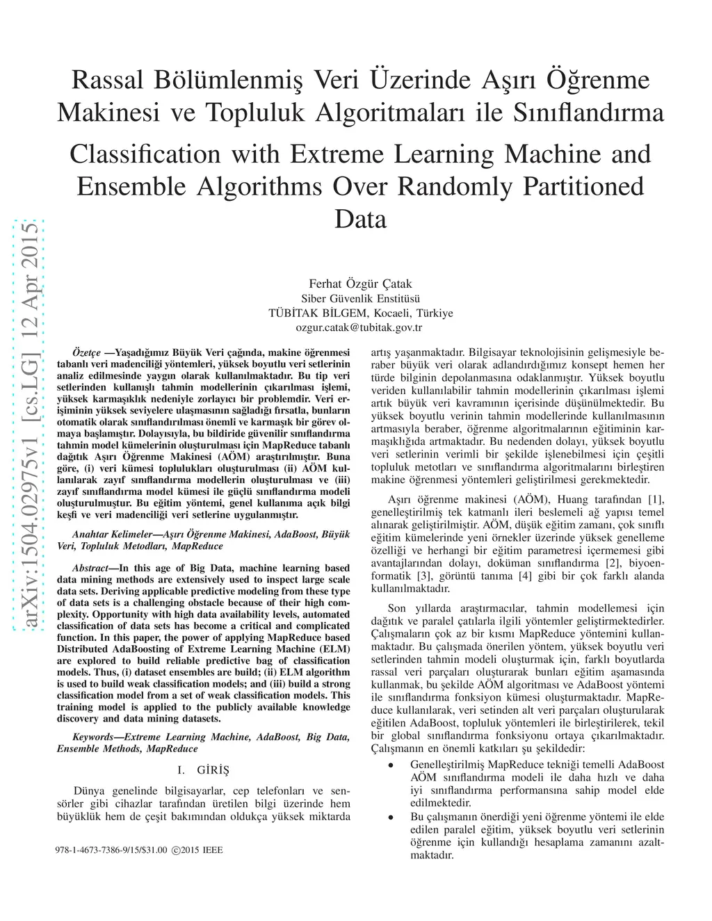 Classification with Extreme Learning Machine and Ensemble Algorithms