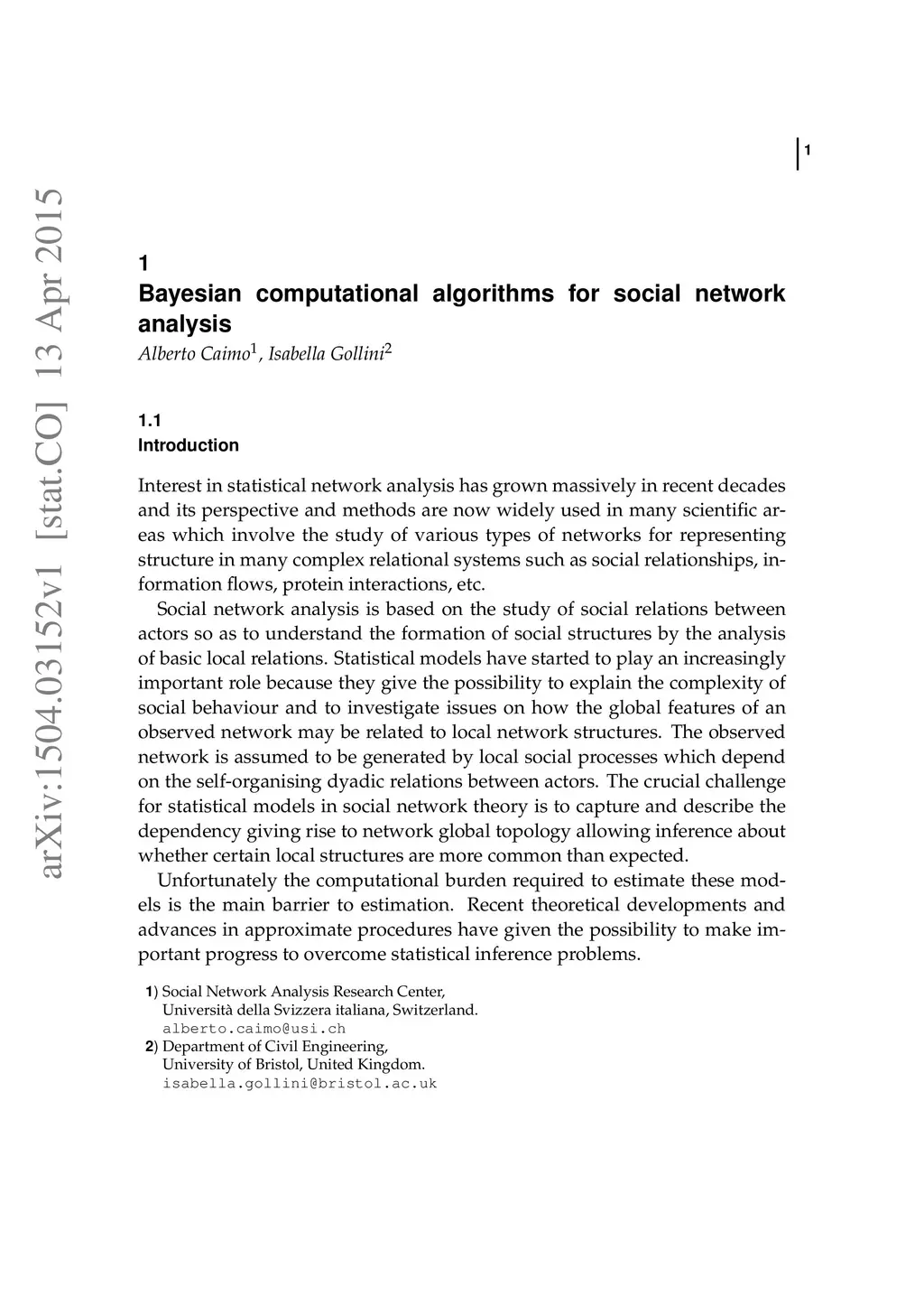 Bayesian computational algorithms for social network analysis