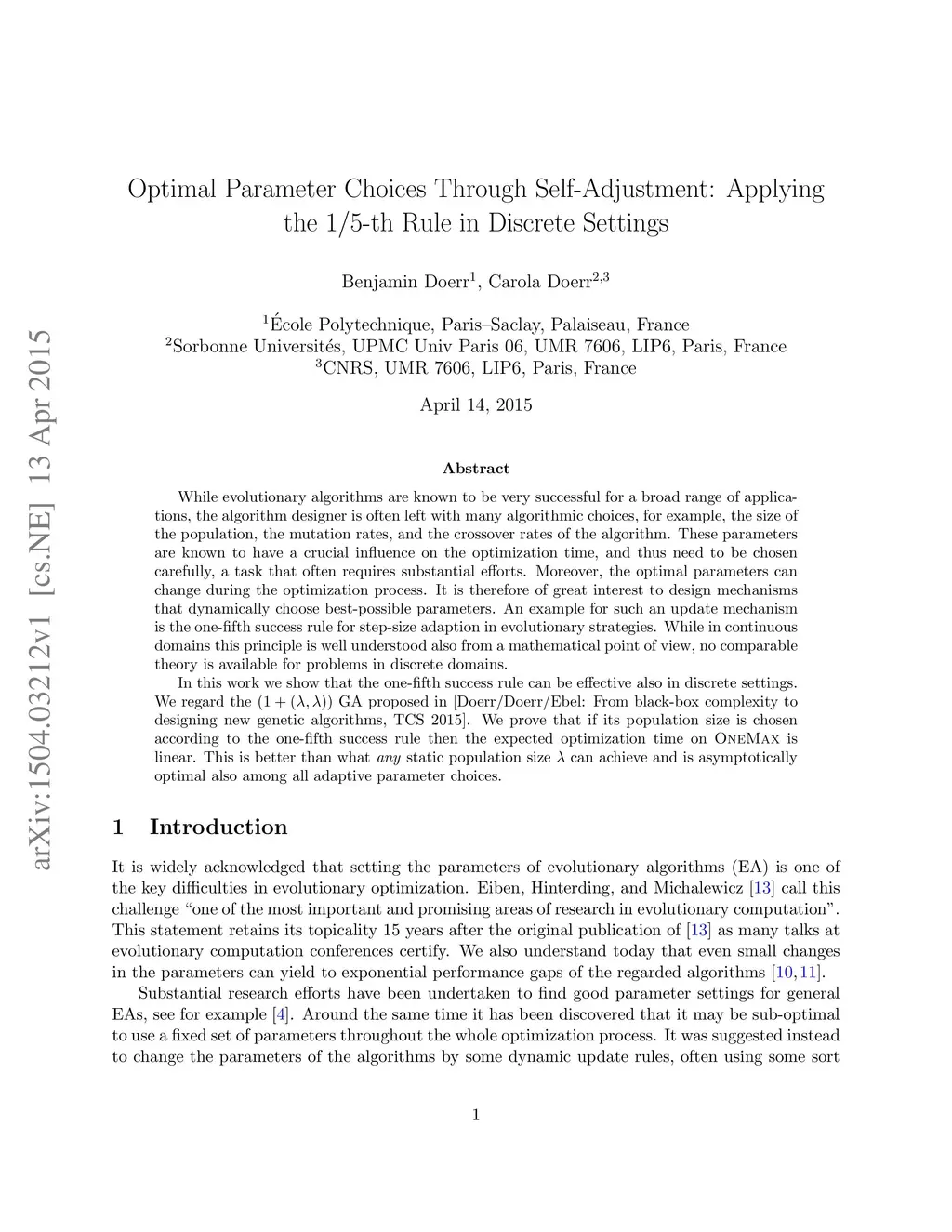 Optimal Parameter Choices Through Self-Adjustment: Applying the 1/5-th