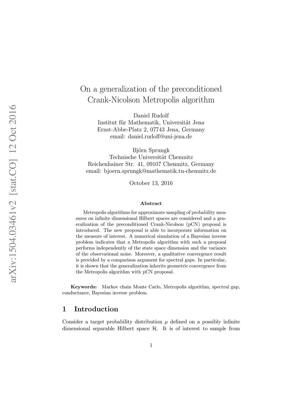 Metropolis algorithms for approximate sampling of probability measures on infinite dimensional Hilbert spaces are considered and a generalization of the preconditioned Crank-Nicolson (pCN) proposal is introduced. The new proposal is able to incorporate information of the measure of interest. A numerical simulation of a Bayesian inverse problem indicates that a Metropolis algorithm with such a proposal performs independent of the state space dimension and the variance of the observational noise. Moreover, a qualitative convergence result is provided by a comparison argument for spectral gaps. In particular, it is shown that the generalization inherits geometric ergodicity from the Metropolis algorithm with pCN proposal.