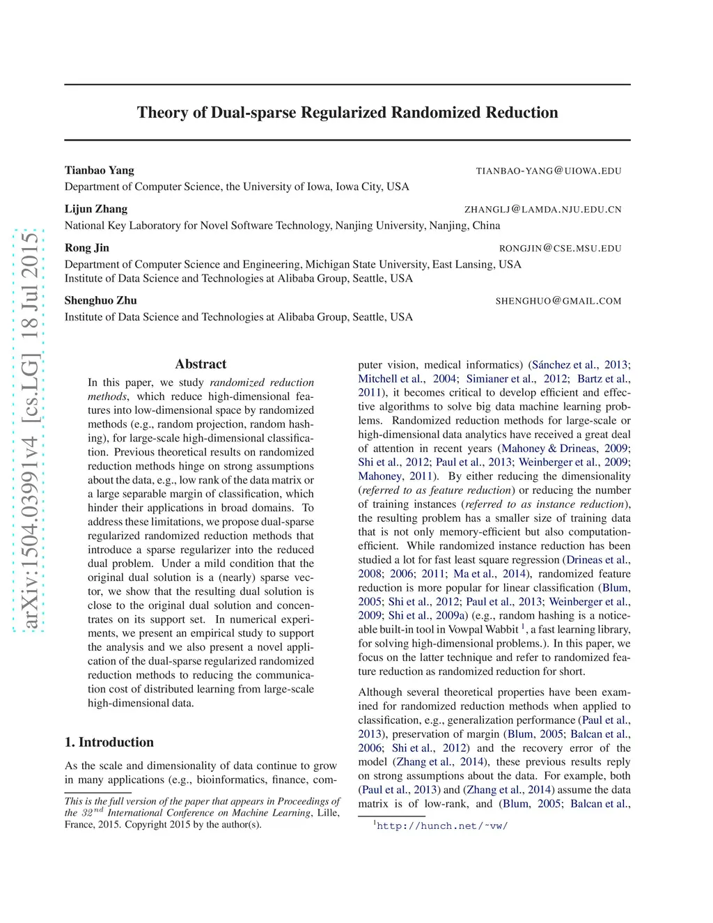 Theory of Dual-sparse Regularized Randomized Reduction