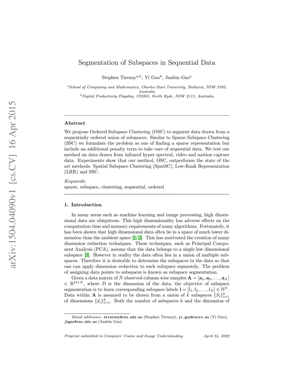 Segmentation of Subspaces in Sequential Data
