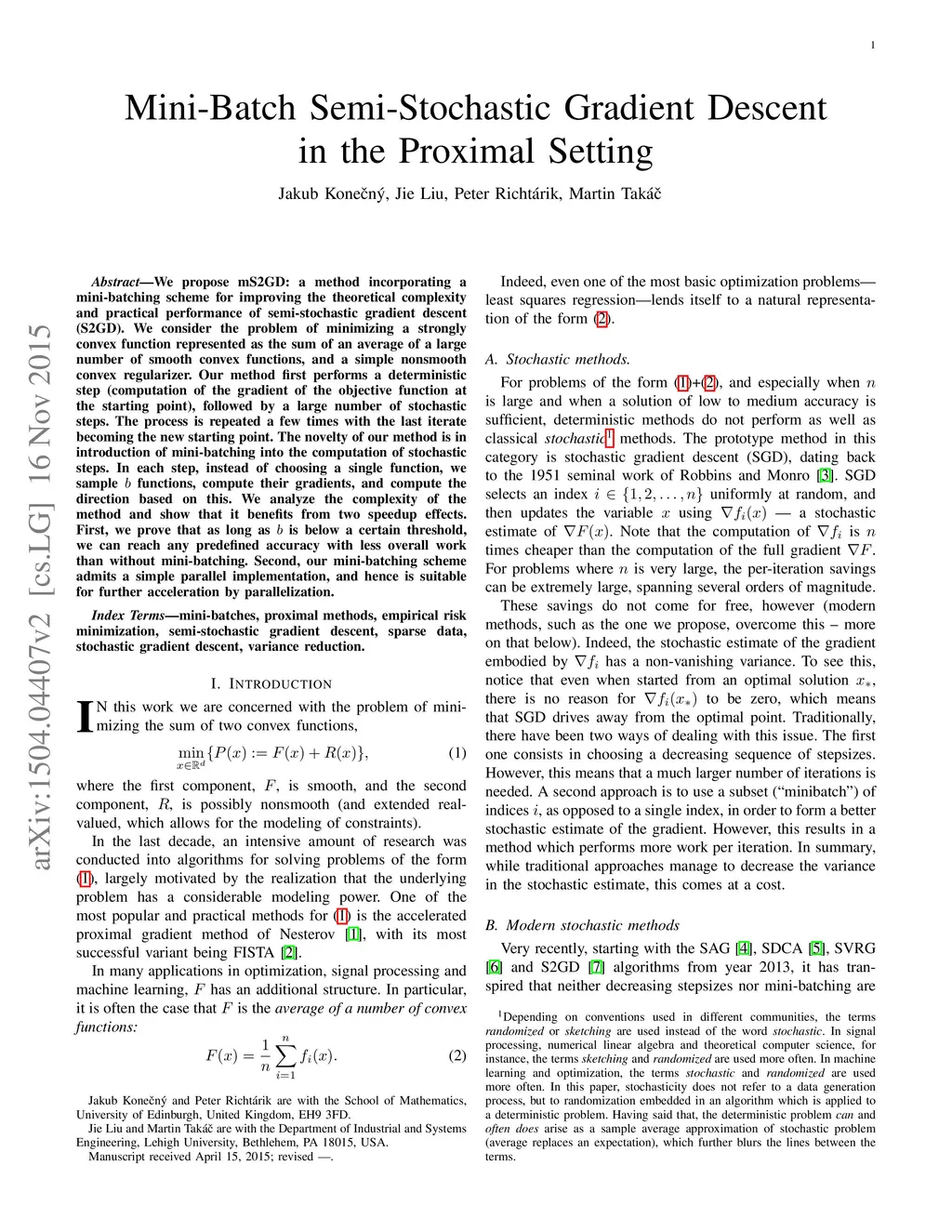 Mini-Batch Semi-Stochastic Gradient Descent in the Proximal Setting