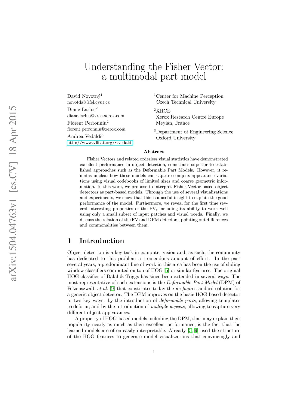 Understanding the Fisher Vector: a multimodal part model