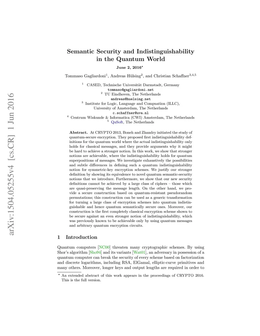 Semantic Security and Indistinguishability in the Quantum World