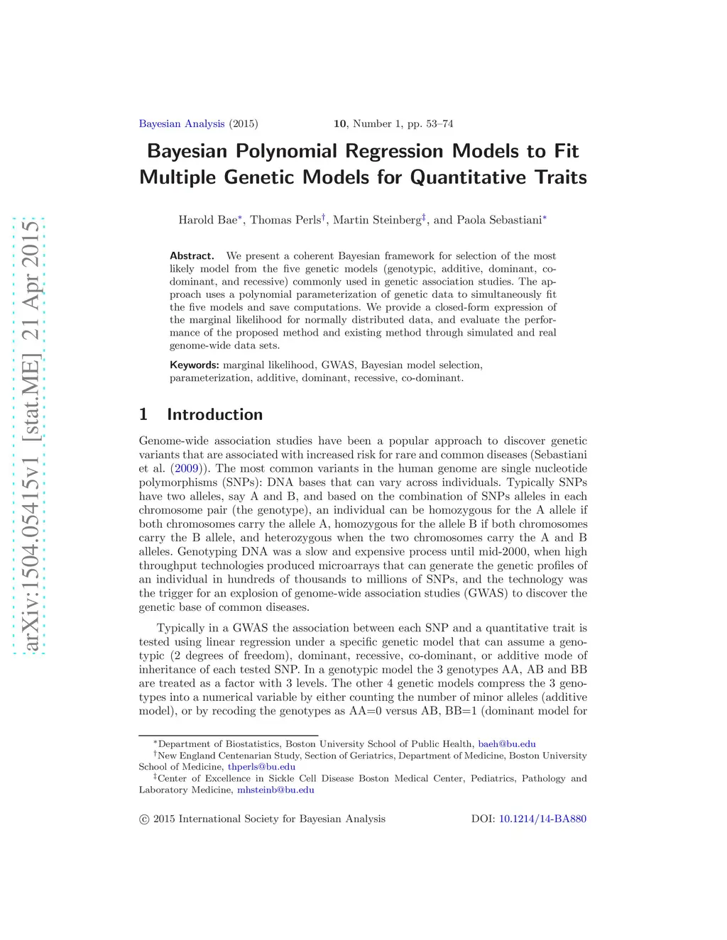 Bayesian Polynomial Regression Models to Fit Multiple Genetic Models for