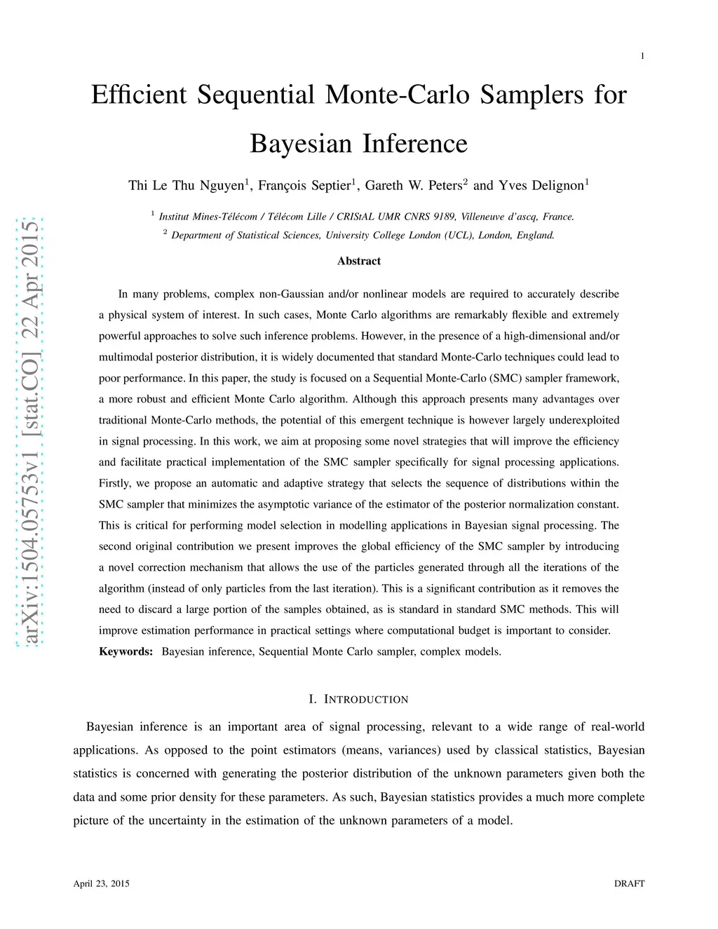 Efficient Sequential Monte-Carlo Samplers for Bayesian Inference
